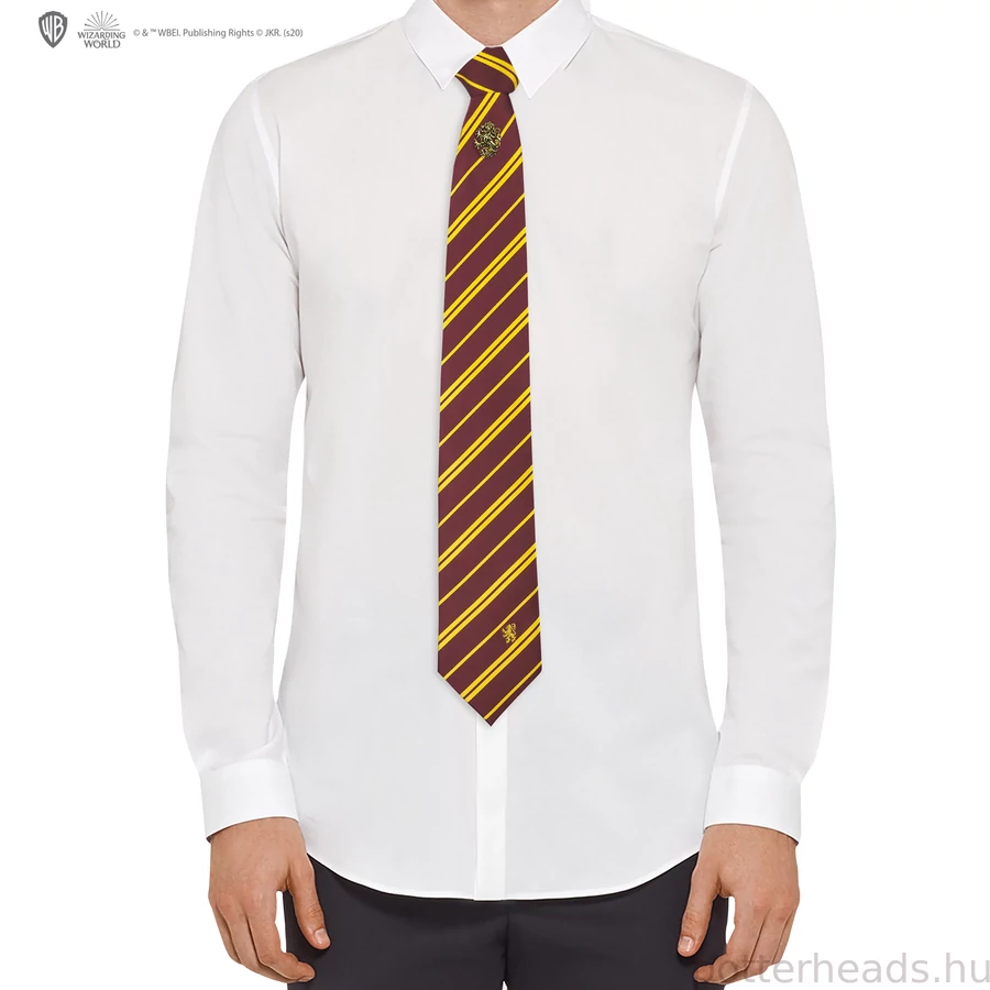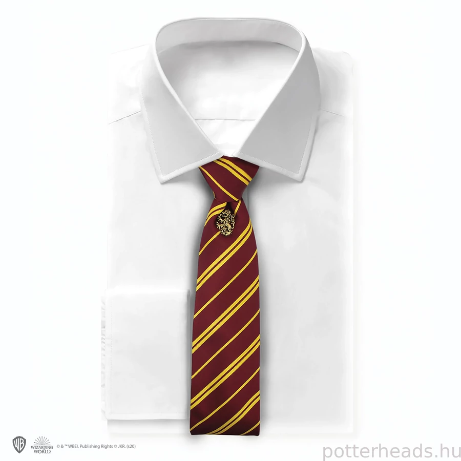 A nyakkendőt egy finoman hímzett oroszlán díszíti, a ház ikonikus jelképe. A szett tartalmaz egy exkluzív aranyszínű oroszlán kitűzőt is, mellyel még hangsúlyosabban kifejezheted Griffendéles büszkeségedet. A csomagolás stílusos díszdoboz, így ajándéknak is kiváló!