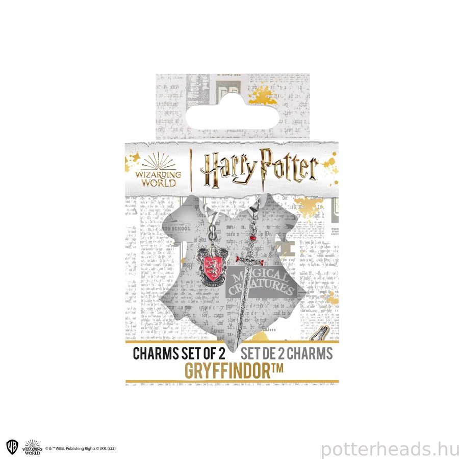 Varázslatos kiegészítők a bátor Griffendél-ház rajongóinak! Ez a két darabos medál szett tökéletes választás, ha szeretnéd egyedi stílusoddal kifejezni a Harry Potter világához való kötődésed. A szett tartalmaz egy gyönyörű, piros színű Griffendél (angolul Gryffindor) címeres medált, valamint a híres Griffendél kardját (Sword of Gryffindor).