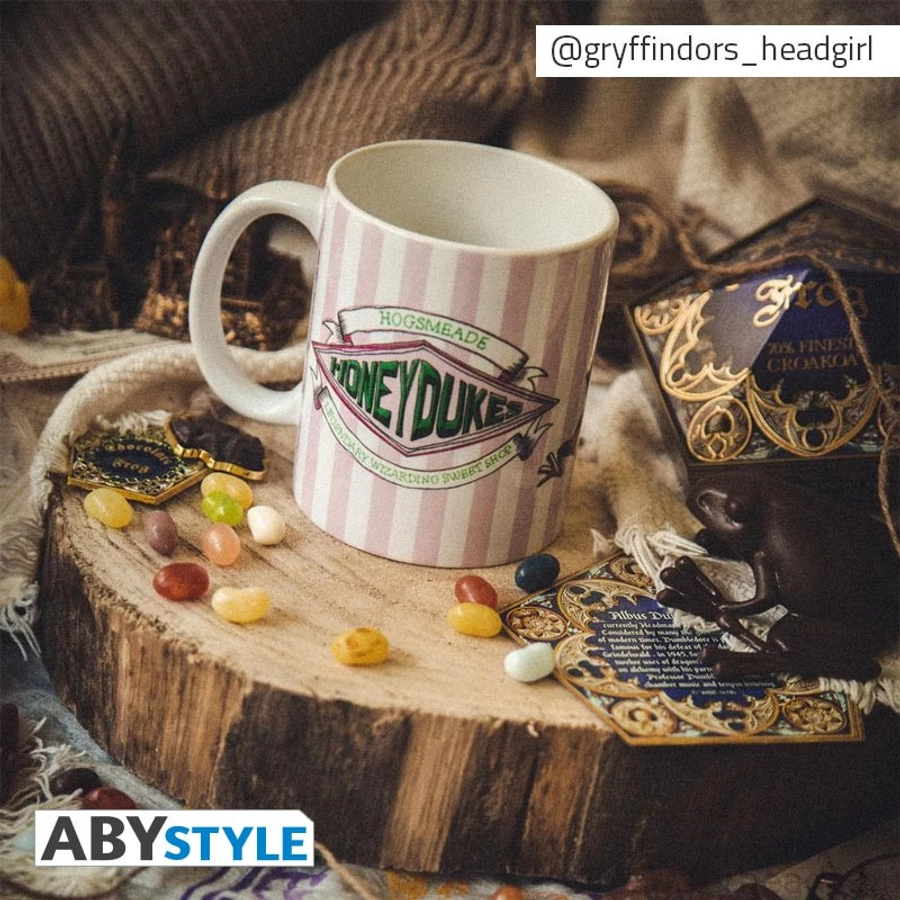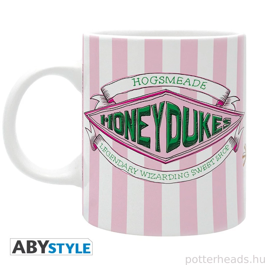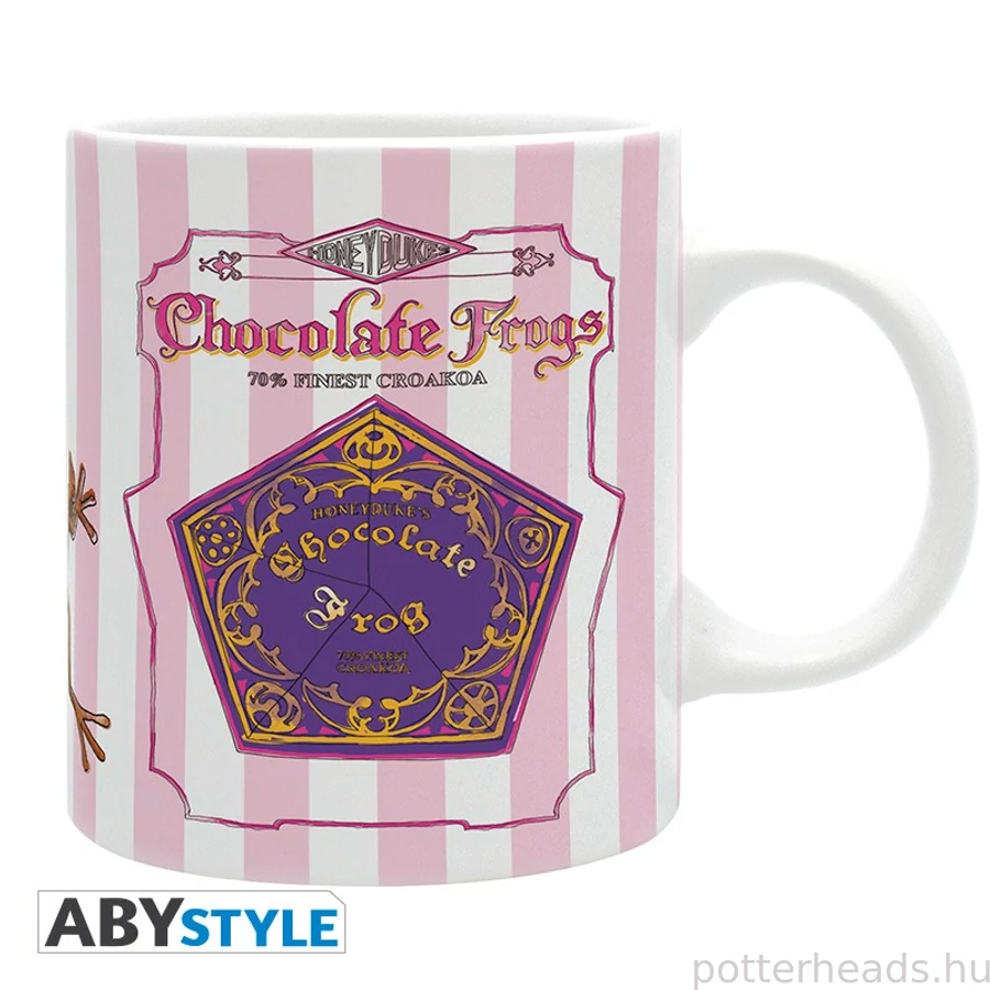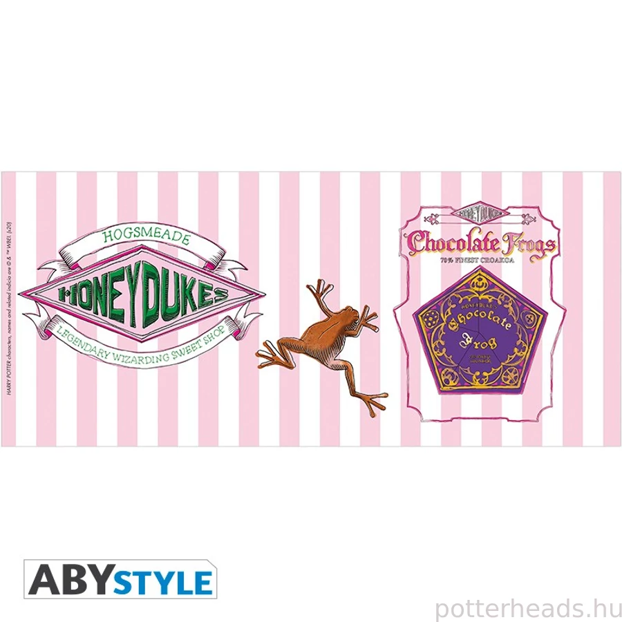 Csempéssz egy kis varázslatos édességbolti hangulatot a reggeli kávéd mellé ezzel a különleges Honeydukes bögrével! A Roxmorts híres édességboltjának stílusában készült, halvány rózsaszín csíkos minta és a csokoládébékás grafika igazi nosztalgikus élményt idéz minden Harry Potter rajongó számára.