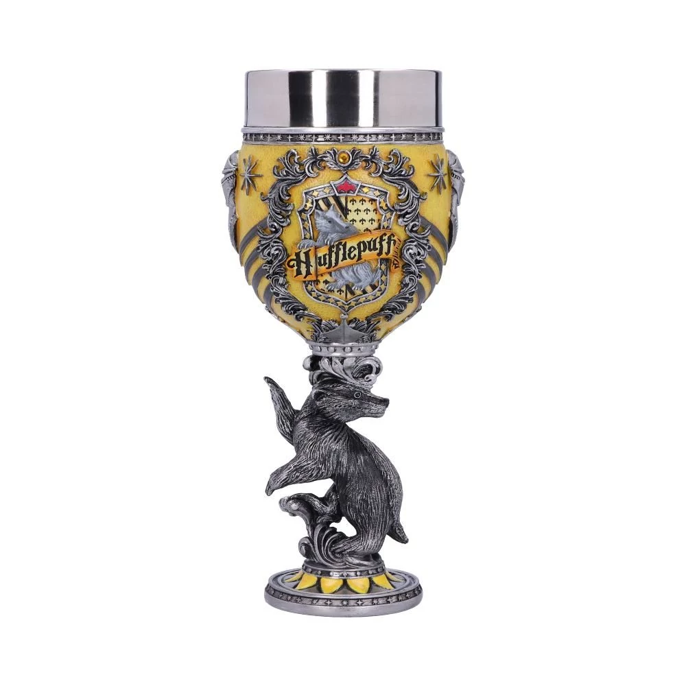 A kehely különleges részletei – a borz formájú talp, a díszes címer és a sárga-fekete színek – garantáltan megragadják a tekintetet. A serleg belsejében egy kivehető, rozsdamentes acél pohár található, amely akár használatra is alkalmas, bár a gyártó elsősorban dekorációs célra ajánlja.