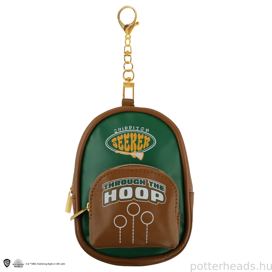 Repülj be a varázsvilág sportjának világába ezzel a Kviddics kulcstartós mini hátizsákkal! A klasszikus zöld-barna színvilágban pompázó tokon a híres "Seeker" felirat és a kviddics karikák motívuma látható, így minden pillanatban felidézi a meccsek izgalmát.