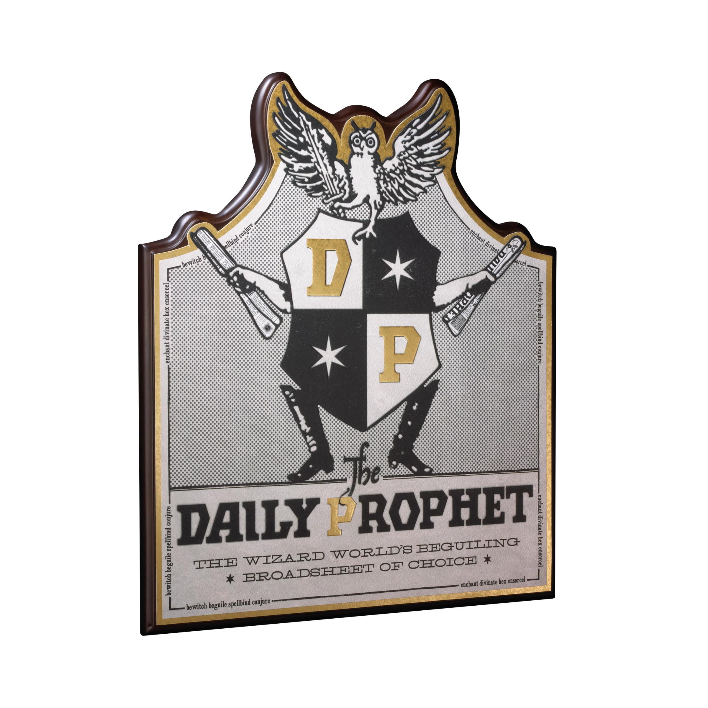 Hozd el otthonodba a varázsvilág legfontosabb hírforrásának hangulatát ezzel a különleges Reggeli Próféta fali táblával! A tábla a legendás varázslóújság címerét ábrázolja bagollyal, pergamenekkel és aranyozott részletekkel – tökéletes dekoráció minden Harry Potter rajongó számára.