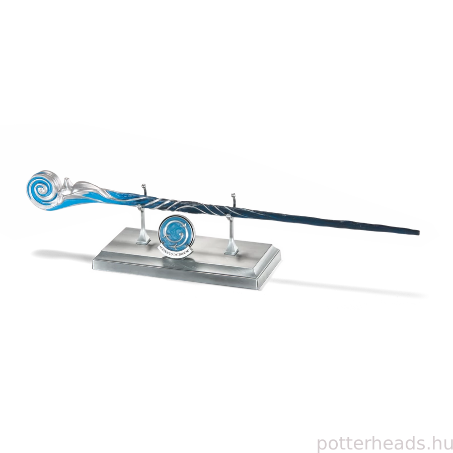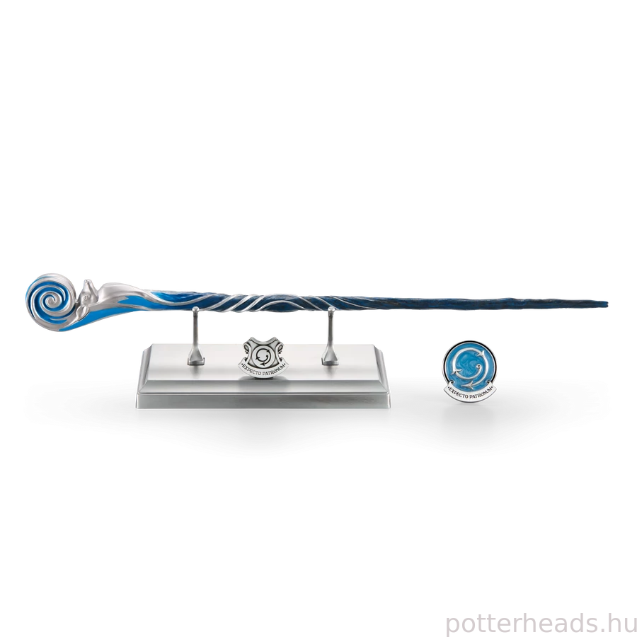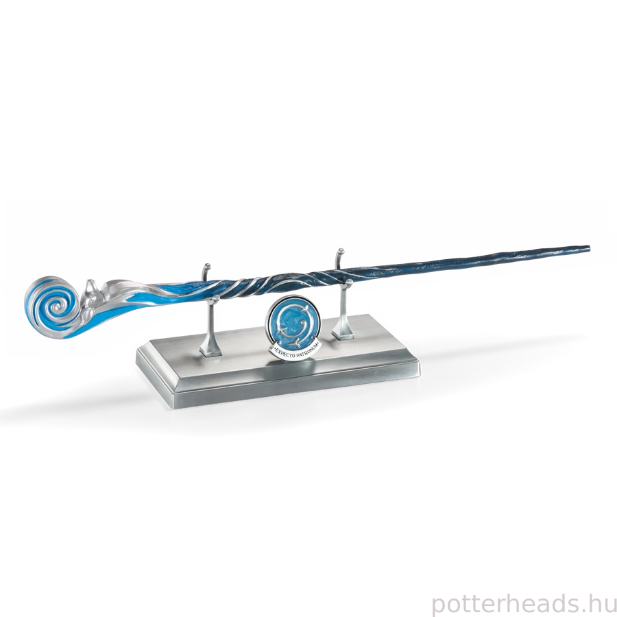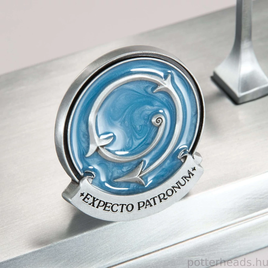 • Gyűjtői kitűző és tartóállvány: a szett része egy fémből készült, öntött tartóállvány, valamint egy kék zománc Patronus Charm kitűző, amely bemutatja a varázslat pontos mozdulatát is.