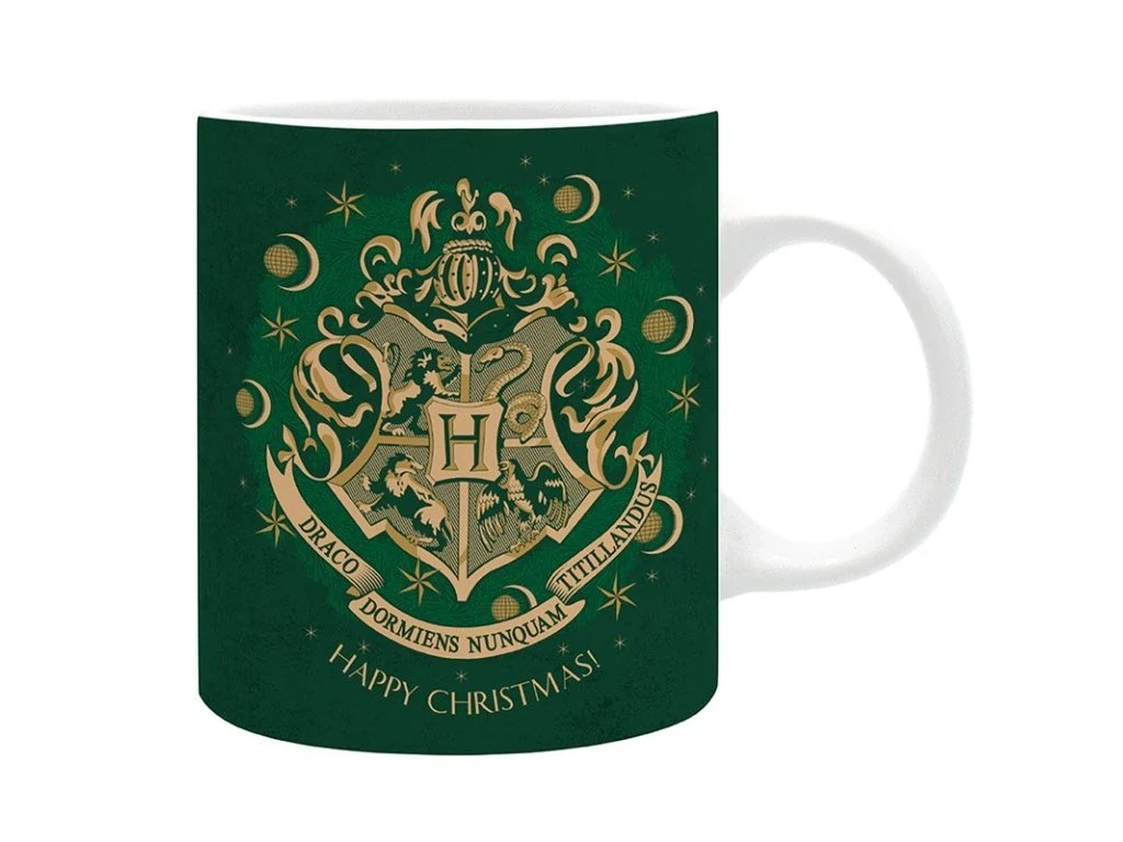 Csempéssz varázslatos ünnepi hangulatot a reggeleidbe ezzel a gyönyörű, zöld színű Harry Potter karácsonyi bögrével! A bögrét arany mintázat díszíti: egyik oldalán a Roxfort címerével és a híres jelmondattal („Draco Dormiens Nunquam Titillandus”), másik oldalán pedig a „Happy Christmas!” felirat tündököl. Tökéletes kiegészítő a karácsonyi időszakra minden Harry Potter-rajongó számára!