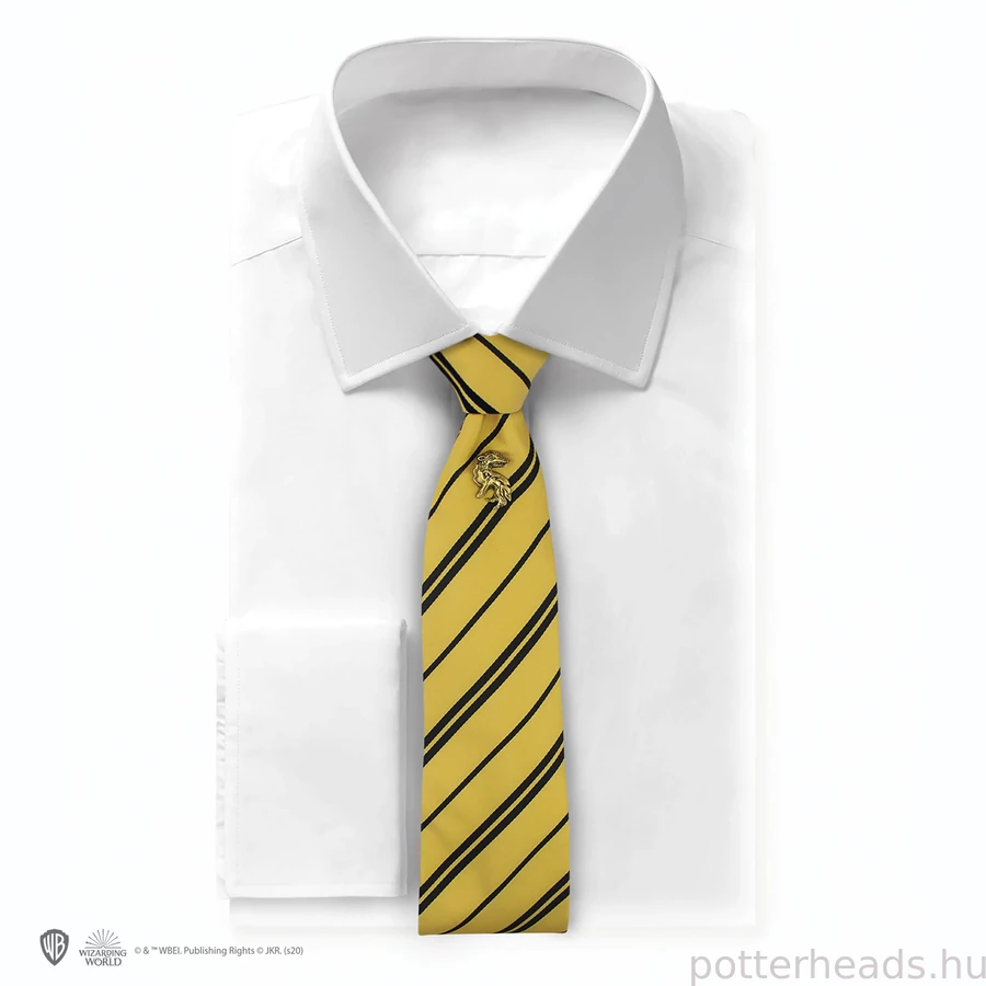 A nyakkendőn finoman hímzett borz motívum díszeleg, a ház ikonikus szimbóluma. A deluxe csomagban ráadásul egy aranyszínű kitűző is helyet kapott, amely tökéletesen visszaadja a Hugrabugos büszkeséget. Mindez elegáns, díszdobozos csomagolásban érkezik – kiváló választás ajándéknak!